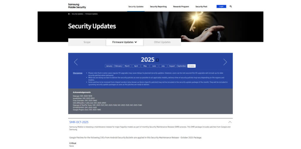 While Google’s official bulletin is empty, individual manufacturers continue to issue patches as part of their security maintenance releases. For example, Samsung’s October 2025 update includes fixes for several “High” severity CVEs. These are derived from Google’s broader security pool and alignment with the Android bulletin framework.